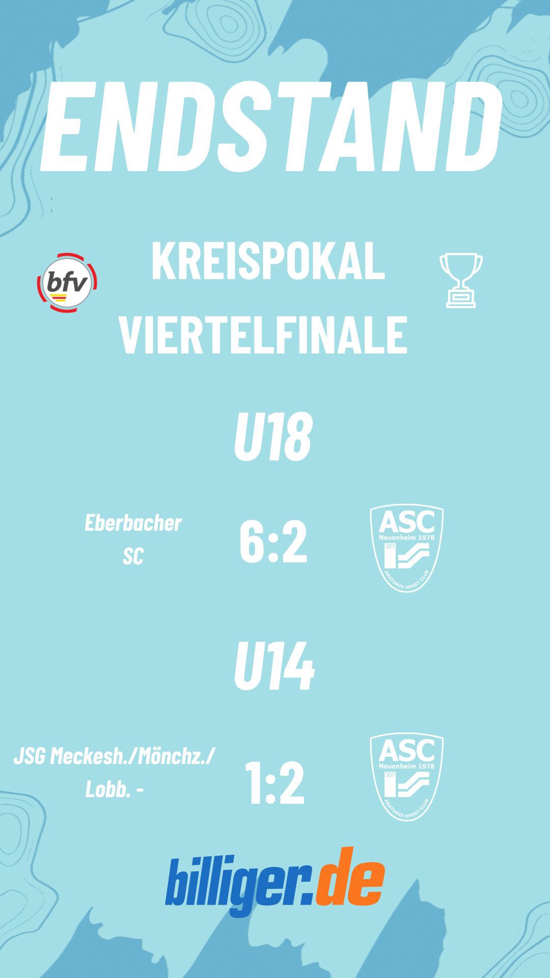 Bereits unter der Woche zog die U14 gegen die JSG Meckesheim-Mönchzell/Lobbach/Mauer ins Halbfinale des Kreispokals ein. Die U19 musste sich dem Tabellenführer VfB Eppingen mit 3.1 geschlagen geben. Die U17 duellierte in einem Testspiel sich gegen VfR Frankenthal ll. Am Ende setzte es eine 3:6 Niederlage. Unsere U15 hatte an diesem Wochenende spielfrei.