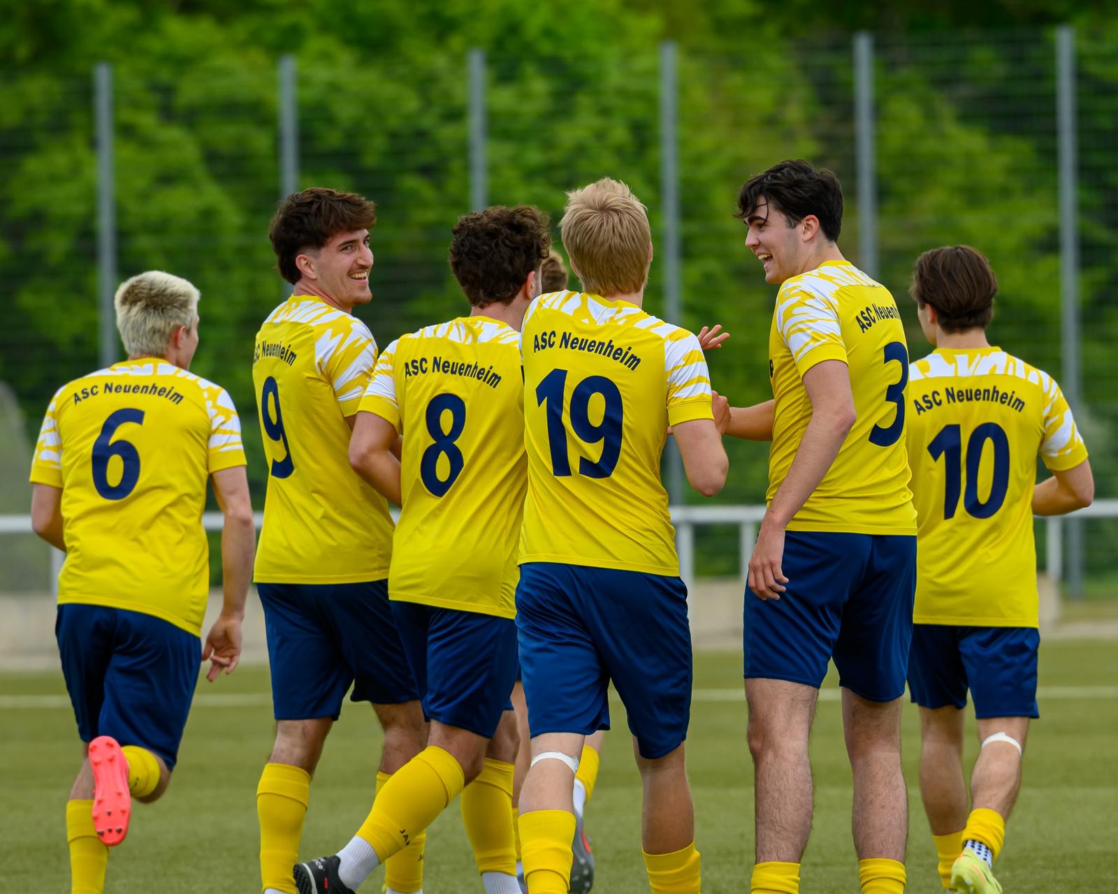 Am 28. Spieltag der Landesliga Rhein-Neckar gastierte am Sonntagnachmittag die SG Kirchardt bei uns am Campus. Linus Sandmann nahm im Vergleich zu Mittwoch fünf Änderungen in der Startelf vor. Jannik Jörns, der gegen Eppingen verletzt fehlte – und dort souverän von Lars Simonis vertreten wurde – rückte zwischen die Pfosten zurück. Max Zoller, Tiago Bianchessi Cetolo, Finn Kölmel und Esrom Negusse nahmen die Plätze von Luca Sanadiradze, Maxim König, Petar Draganjac und Henry Leuzinger ein. Und unsere mAnnSChaft startete gewohnt druckvoll. Die Gäste aus Kirchardt zeigten zwar von Beginn an, dass sie sich gegen ihren aktuellen negativen Trend stemmen möchten, waren aber von Tempo und Wucht der Neuenheimer Angriffe überfordert. In der 14. Minute fasste sich Max Stadler ein Herz und brachte die Gelben mit einem satten Schuss unter die Latte in Führung. Das Gebälk wackelt wahrscheinlich immer noch, die Entscheidung des Schiedsrichters tat es nicht! Der Ball war hinter der Linie aufgekommen – Treffer zählte. Nur zwei Minuten später konnte Kapitän Lenni Günther den Abpraller nach einer scharfen Stadler-Ecke zum 2:0 einschieben (16.). Weitere zwei Minuten später bediente Inaki Betzold Esrom Negusse mustergültig aus dem Halbfeld. Der bringt den Ball – technisch höchst anspruchsvoll – volley mit der Innenseite im Tor unter und erhöht auf 3:0. Die weiteren ASC-Chancen bis zur Pause blieben ungenutzt und im zweiten Durchgang konnten die Gäste dann deutlich mehr Paroli bieten. Dennoch kamen unsere Jungs immer wieder gefährlich vors Tor. Wie in der 62. Spielminute, wo Finn Kölmel einen Turbo-Konter erfolgreich zum 4:0 abschließt. In der letzten halben Stunde machen die Neuenheimer Jungs zu wenig aus ihren Möglichkeiten und das Spiel dadurch unnötig spannend. Die Gäste kamen durch Martin Frey (65.) und Michael Baronas (71.) nochmal 4:2 ran, aber am Ende steht der dritte Sieg innerhalb von sieben Tagen für den ASC. Mit nun 41 Punkten verteidigen wir Rang 6!